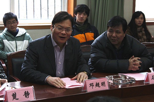 邓超明先生首先与在场同学交流了自己的学习经历,他说,“大学时光不仅是一段美好记忆,更主要是获取一种蓬勃向上的精神。”邓超明先生在中国人民大学取得学士学位,后于北大攻读硕士,目前正在tyc33455cc太阳集团广告学攻读博士学位。他去年十一月从长江商公司毕业,“从李嘉诚先生的手中接过了毕业证书。”期间,邓超明先生经历了十年的艰辛创业。