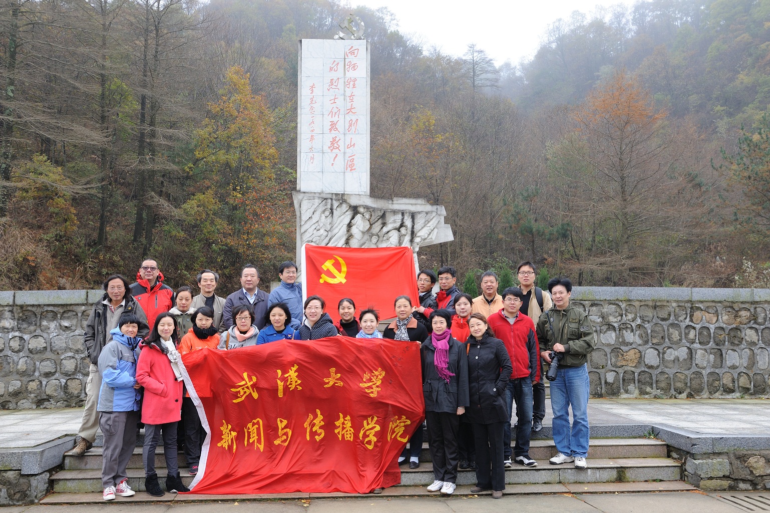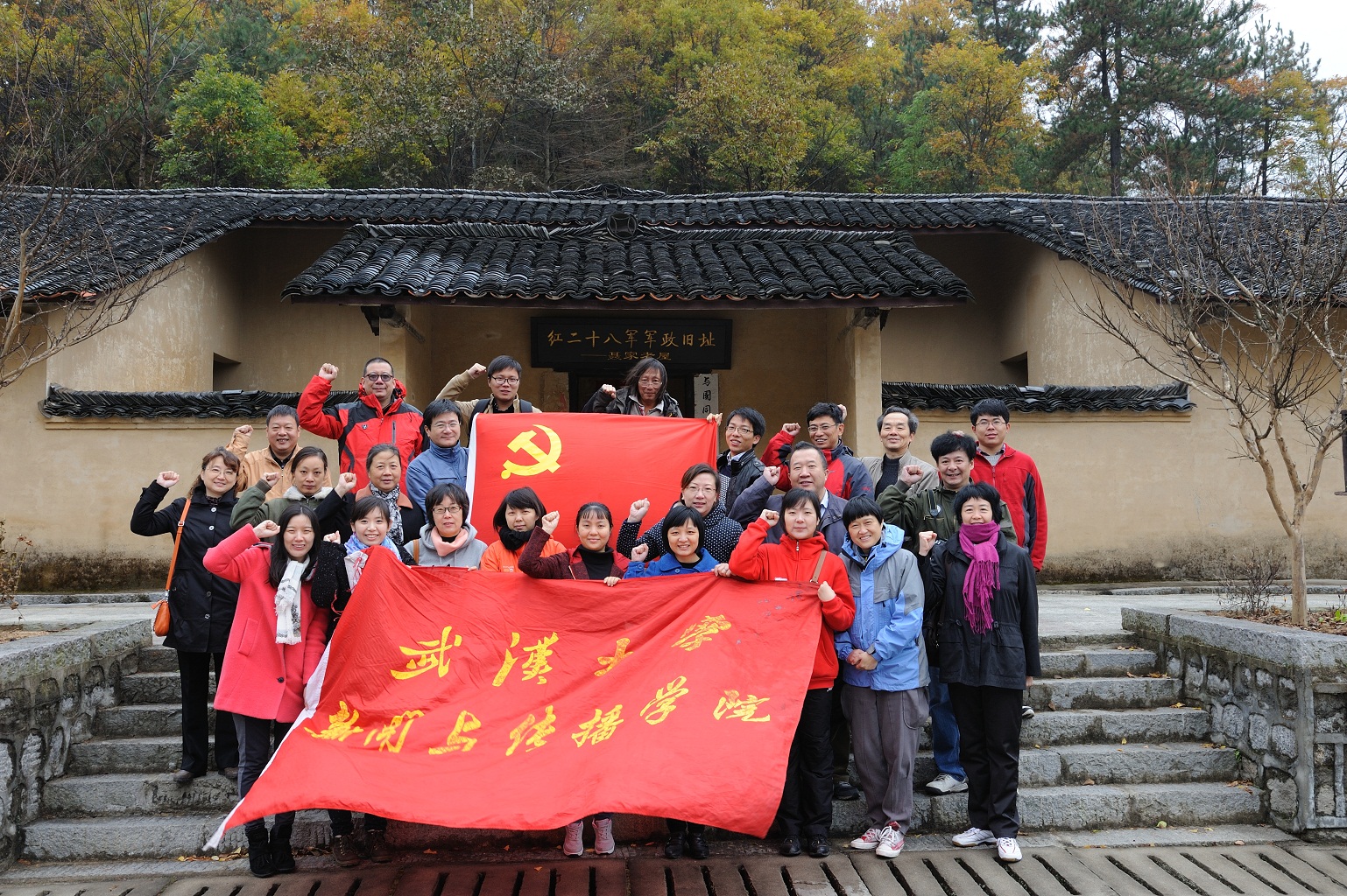 11月9日,大家抵达鄂皖交界处的红二十八军军政旧址接受革命传统教育。一行人冒着寒风细雨在红二十八军纪念碑前庄严承诺:以党员为骨干,加强行政能力建设,为公司的教学科研工作服好务;加强党员的先锋模范带头作用,加强凝聚力建设,保障公司工作高效、高质量的完成。