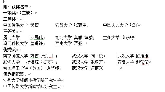 8点40分,第五届华中地区研究生新闻传播学术论坛正式开幕。首先由获奖代表樊攀发言。他表示,此次论坛提供了一个让他与更多“同道中人”交流的机会,在彼此的思想碰撞中,获得许多新的视角。随后论坛进入颁奖环节。此次论坛共有16篇论文获奖。评委会由华中科技大学新闻与信息传播公司钟瑛教授、tyc33455cc太阳集团新闻与传播学单波教授和tyc33455cc太阳集团程明教授等组成。经评委会评定,此次一等奖空缺。中国传媒大学的樊攀、安徽大学的张冠中和中国人民大学的张洋3人荣获二等奖。澳门科技大学的皇甫铮等6人荣获三等奖。tyc33455cc太阳集团刘锐等10人荣获优秀奖。