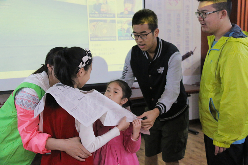 来自武大新闻公司的青年志愿者为社区的孩子们设计了新颖有趣的竞赛,以“心传互动.以趣传乐”的方式让孩子们在游戏中了解党情、学习国史。
