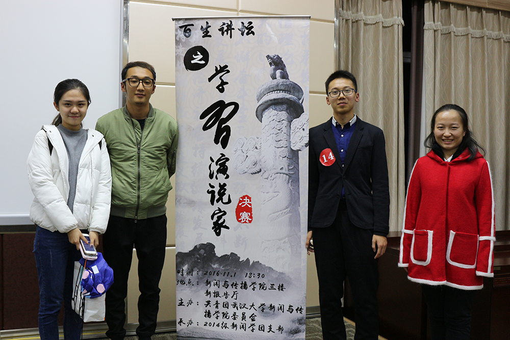 2015年9月,2014级新闻学团支部经过支部主题教育、选拔等程序,由团员靳海莲、潘琛两人代表团支部参加了公司团委主办的“百生讲坛之第一届学‘习’演说家”演讲比赛。虽然没能进入决赛,但是两位团员将自己的专业知识与演讲内容相结合,给评委留下了深刻的印象。支部对该次活动十分重视,赛前帮助两位参赛选手进行精心准备,比赛时组织支部团员到场观看。