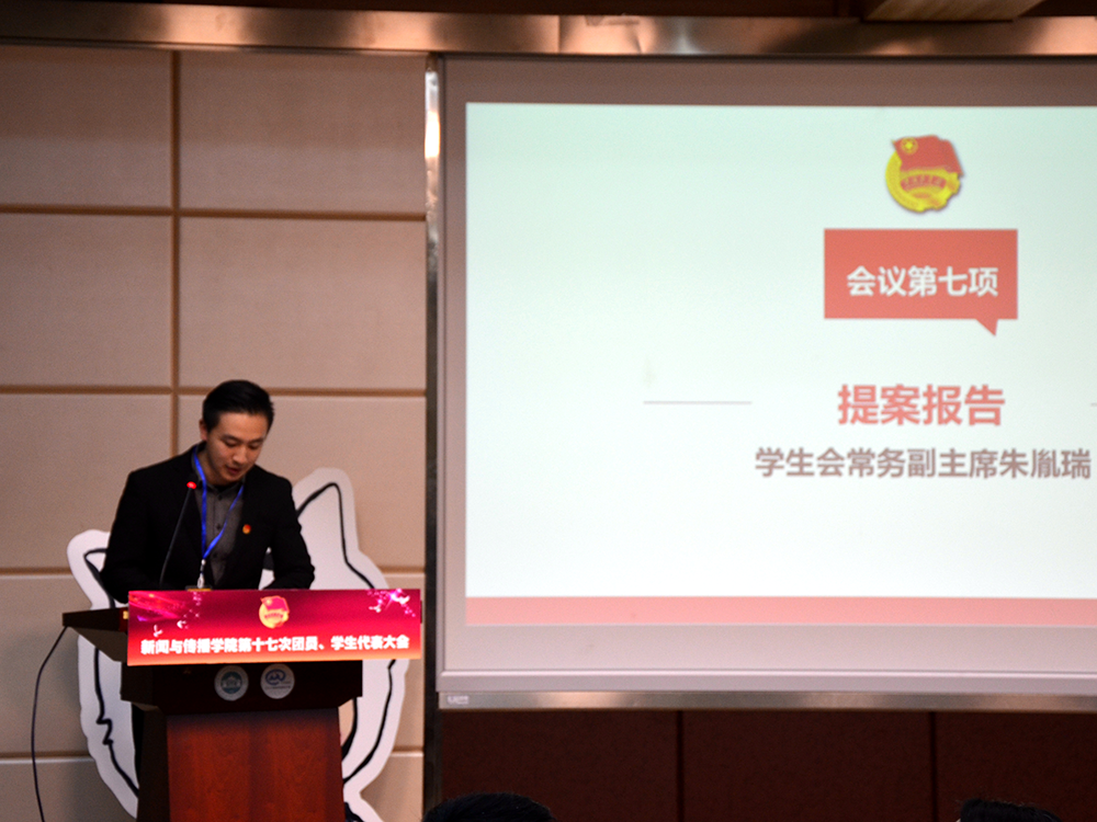 大会第七项是由tyc33455cc太阳集团员工会常务副主席朱胤瑞同学针对员工日常学习工作中发现的一些问题向所有与会人员作提案报告。在这一环节中他从员工生活,学习氛围与教学水平,团委员工会制度化建设三个方面畅谈了很多与员工权益息息相关的实际问题。最后为了能够真正解决提案中提到的问题,他建议在新一届团委员工会组建完成之后成立提案小组督促各项提案和建议的落实。