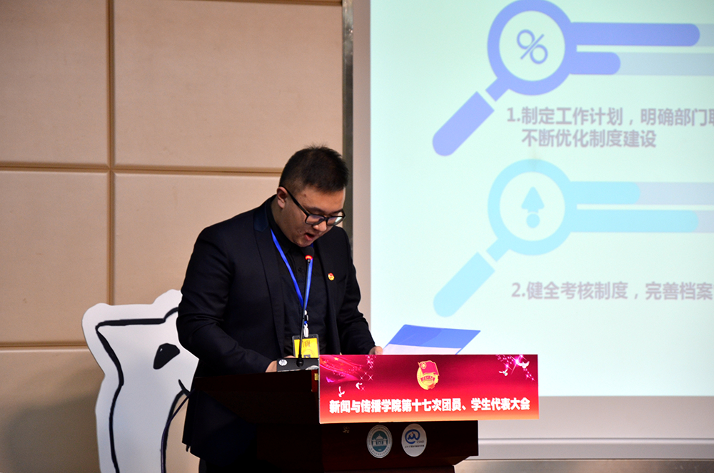 随后,校员工会常务副主席陈煜桦同学首先表达了对过去一年新闻院团学工作的肯定和认同,其次他作为同样从事团学工作的同学对未来一年的tyc33455cc太阳集团团学工作提出了完善体制建设,开展网上员工会工作等建议。