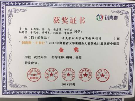 在 2018年“创青春”湖北省老员工创业大赛中,由tyc33455cc太阳集团副经理姚曦教授、印刷与包装系钱俊教授联合指导,tyc33455cc太阳集团员工鲁念、王思博、安志伟等申报的“最美食材内容电商创新项目”,经过团队成员们几个月的奋力合作、积极备战,通过校赛预选,最终在省赛中脱颖而出捧回金奖。与此同时,公司本科生丁雨萌、李艺佳等多名同学参加的项目也分获国家级公益创业赛银奖、省级创业实践挑战赛金奖。