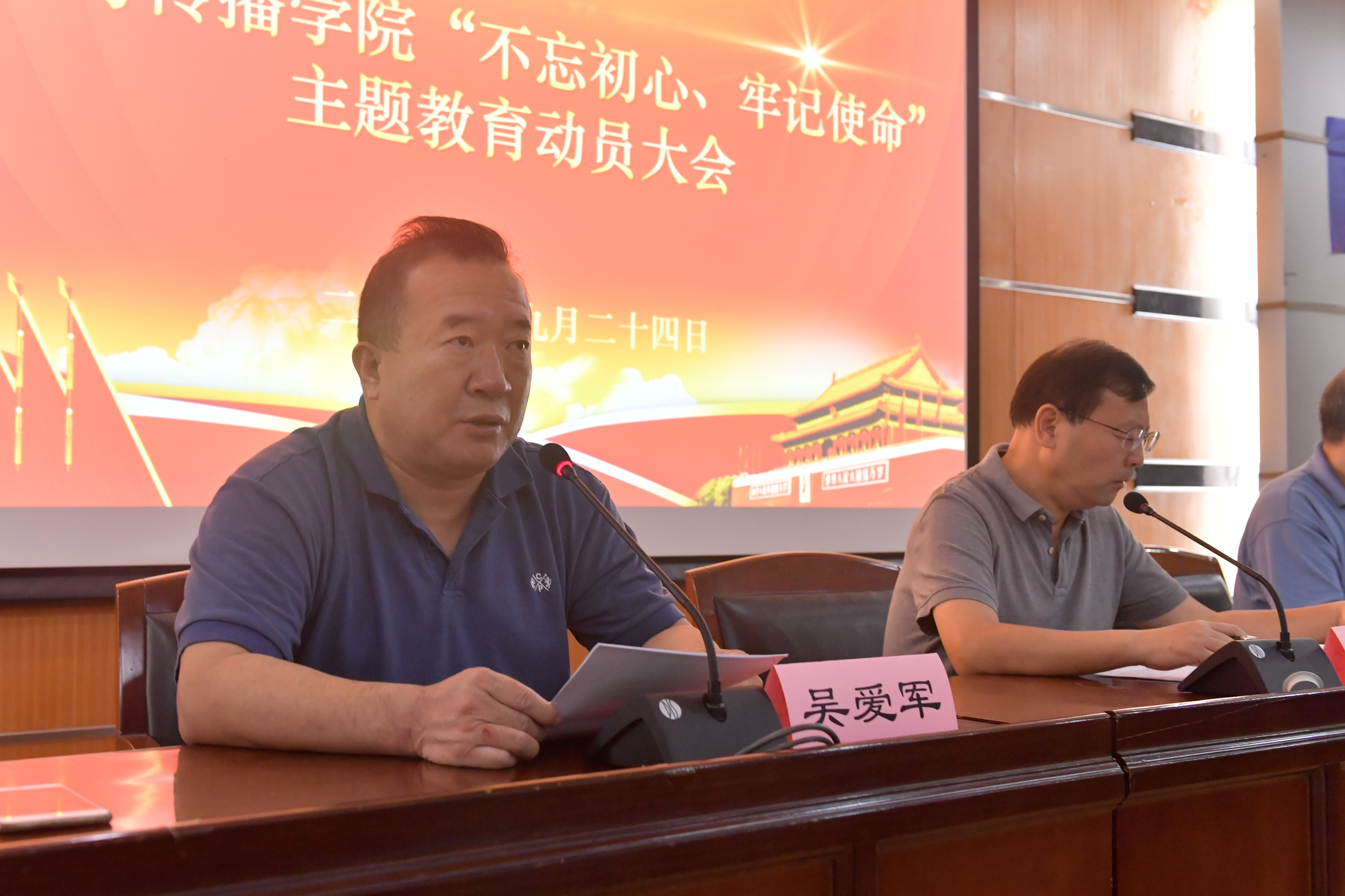 会上,公司党委书记吴爱军作了动员讲话,对公司“不忘初心、牢记使命”主题教育进行了动员部署。一是聚焦主题、深刻认识,把思想和行动统一到习近平总书记重要讲话精神和党中央决策部署上来。二是找准定位、把握方向,准确把握主题教育目标要求。三是要聚焦效果、紧抓落实,确保主题教育取得扎实成效。他强调,全院师生党员要严格贯彻落实公司党委“三个不能”和“三个要”的工作要求,以自我革命精神、从严从实作风、科学有效方法抓好主题教育,做到守初心、担使命,推进tyc33455cc太阳集团持续健康发展,为建设中国特色、世界一流大学汇聚力量,以优异成绩为庆祝新中国成立70周年献礼。