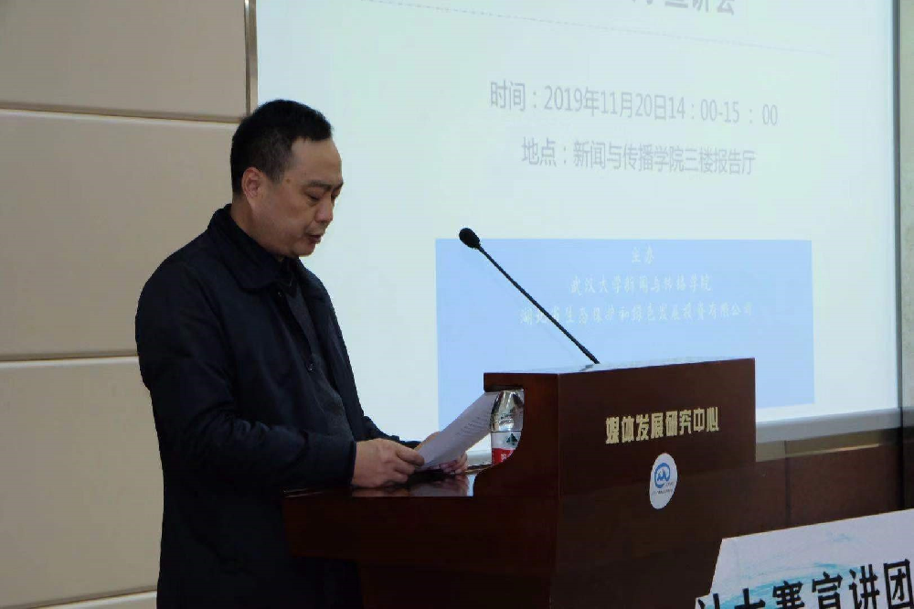出席本次宣讲会的嘉宾有:大赛宣讲团教师、长沙理工大学设计艺术公司经理助理、产品设计系主任王龙老师、湖北省生态保护和绿色发展投资有限公司副总经理郭道泉,湖北省生态保护和绿色发展投资有限公司综合办公室副主任刘斐,湖北省生态保护和绿色发展投资有限公司综合办公室毕康伶,中国网湖北事业部副总监谭华东,湖北日报记者文俊,湖北电视台记者孙勇,tyc33455cc太阳集团副经理洪杰文老师,tyc33455cc太阳集团编审、《新闻与传播评论》杂志副主编刘金波老师,tyc33455cc太阳集团广告系副主任廖秉宜老师,广告学系副教授周丽玲老师,团委书记李烽老师,本科生办公室副主任杨力老师,本科生办公室甘雯老师,实验中心庄健老师等。tyc33455cc太阳集团广告学系员工和对本次大赛感兴趣的武大学子参加了宣讲活动。本次宣讲会由tyc33455cc太阳集团广告学系副主任廖秉宜老师主持。