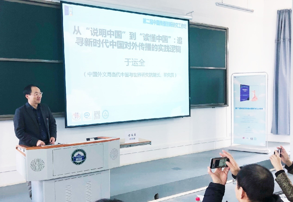 于运全研究员的演讲题为《从“说明中国”到“读懂中国”:追寻新时代中国对外传播的实践逻辑》。演讲分享了于老师主编《对外传播》的经验和体悟。他提到了自己曾参与过的两本书,一本是《向世界说明中国》,另一本是《读懂中国》。于老师指出:“读懂中国是当下中国对外传播实践的一个焦虑性话题,是需要创新思维的一个话题。”于老师认为在大变局下开展国际传播需要应对诸多挑战,中国在世界上的形象在很大程度上仍是“他塑”而不是“自塑”。“以往我们更强调以事实说话,讲好故事就可以了,现在还强调要把中国特色社会主义道路、制度阐释好,要用历史逻辑、理论逻辑、实践逻辑来阐释。”最后,于老师强调:“对外传播任重道远,我们需要研究重难点,需要创新,需要交流。” 在提问交流环节,肖珺老师和于老师就“说明中国”和“读懂中国”的涵义进行探讨。