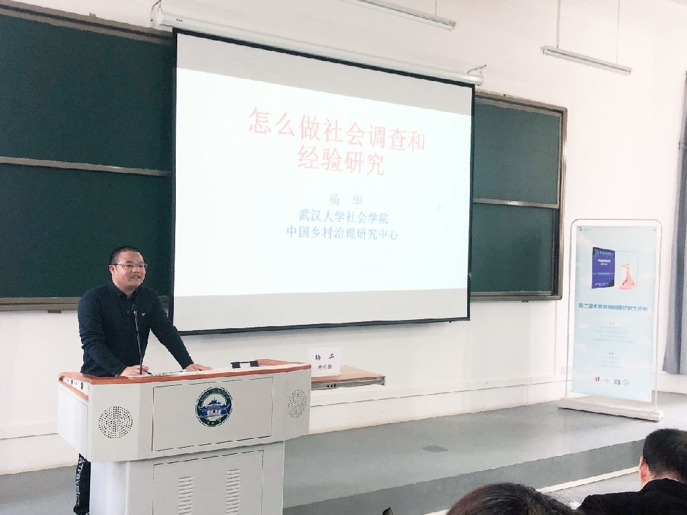 杨华老师讲授的内容是《怎么做社会调查和经验研究》。杨华老师结合学科特点和自身经验,重点介绍了社会学的调查研究方法。围绕社会调查的概念、调查准备、调查入场、调查展开、集体讨论、撰写调查报告等要点进行阐述。在介绍经验研究时,杨华老师首先强调经验研究能够设置自己的研究议题,“经验研究要不带问题意识地‘下去’,两手空空、脑袋空空地进入经验的现场,在经验浸泡中发现问题、提出问题。”。其次,要扎根中国经验。再次,经验研究是对事的思考,不是对词的思考,因此它很开放,在研究方法上采取拿来主义,视不同的问题采取不同的方法。最后,经验要与理论反复对话。在提问交流环节,现场同学提问:“在饱和经验的基础上再进行分析时如何避免主观因素的影响?”杨华老师回答饱和经验是不怕错的,要大胆假设小心求证,发现错了就回到经验中更正,在经验中来回穿梭,不断修正解释,无限地接近经验、接近真实。