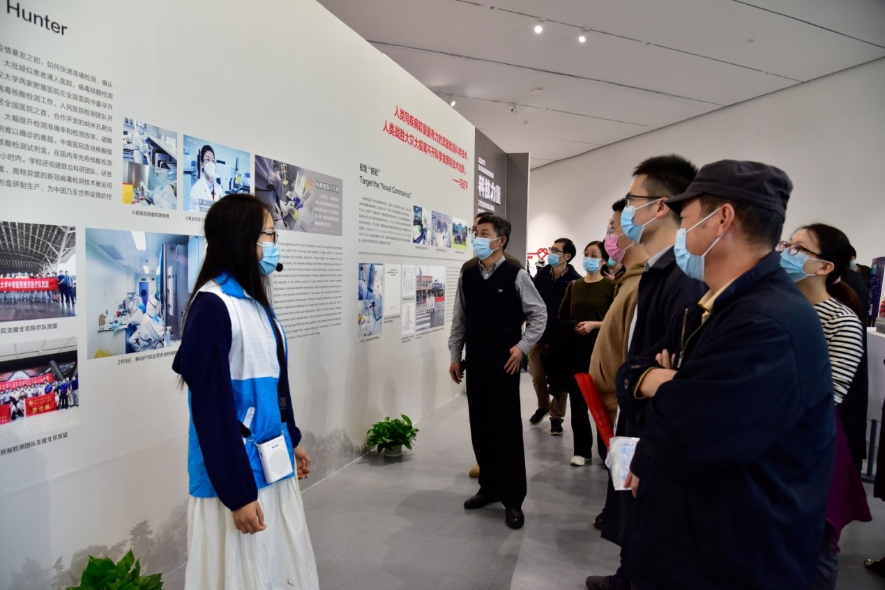 10月8日下午,tyc33455cc太阳集团行政教工党支部开展“弘扬抗疫精神,牢记育人使命”主题党日活动,组织支部党员和全体行政教师参观“我们在一起——tyc33455cc太阳集团抗击新冠肺炎疫情特展”。该展览作为疫情防控阻击战主战场湖北省和武汉市内首个综合性抗疫特展,以“我们在一起”为主题,以tyc33455cc太阳集团为中心,并将视野辐射到武汉、全国乃至全球,融合时间线、故事线等多线叙事,精心打造了“序厅”“科技力量”“生命至上”“与子同袍”和“守护珈园”等展出单元。