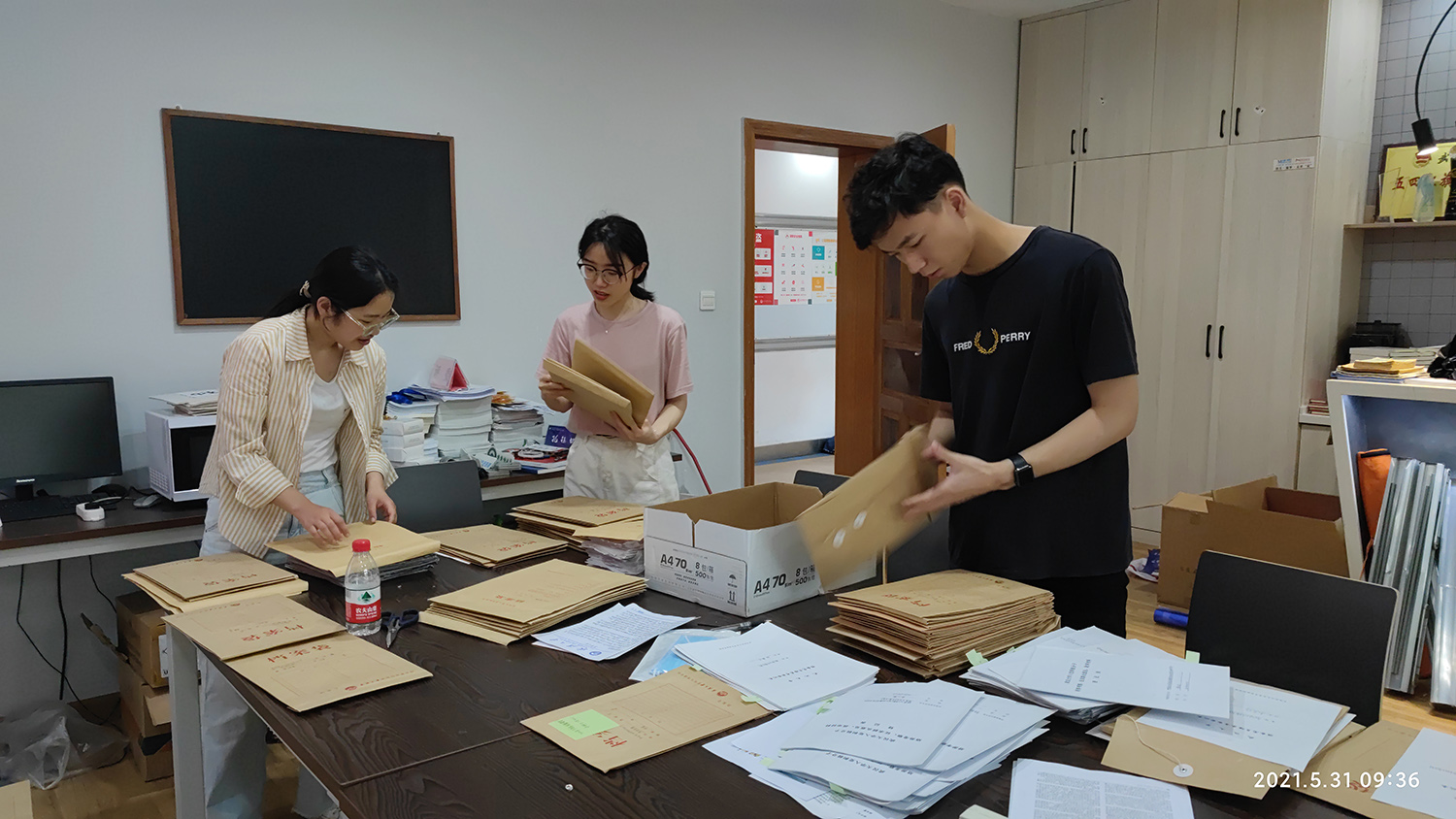 值班党员同志在106整理党员材料