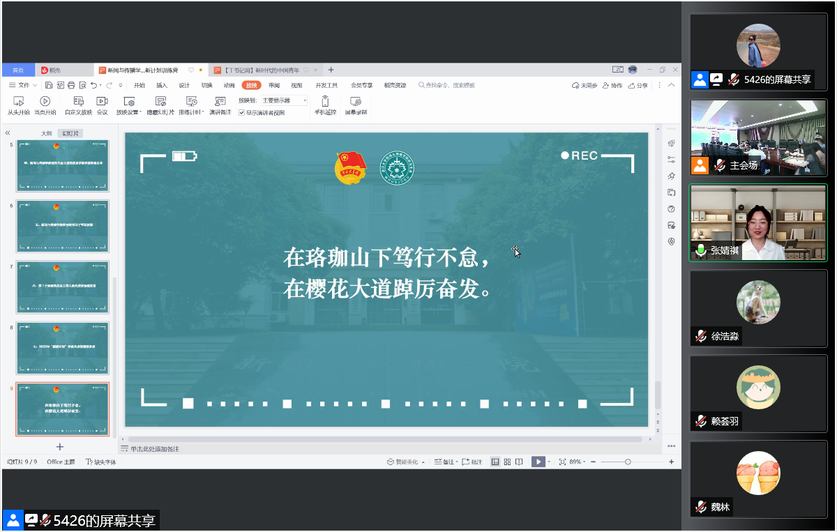 2022年5月5日下午,公司研究生团学组织骨干培训班开班仪式暨2022“新新计划”训练营开营仪式在公司229会议室及线上腾讯会议同步举行。公司党委副书记丁雪琴、副经理吴世文、院团委书记李烽、院团委副书记杨頔、院研究生兼职辅导员黄豆豆、校研究生会主席团成员段施雯、院团委下设部门(研究生)工作人员、院研究生会执行机构工作人员以及2022年“新新计划”全体学员参加了本次大会。会议由公司研究生会主席团成员肖俏主持。