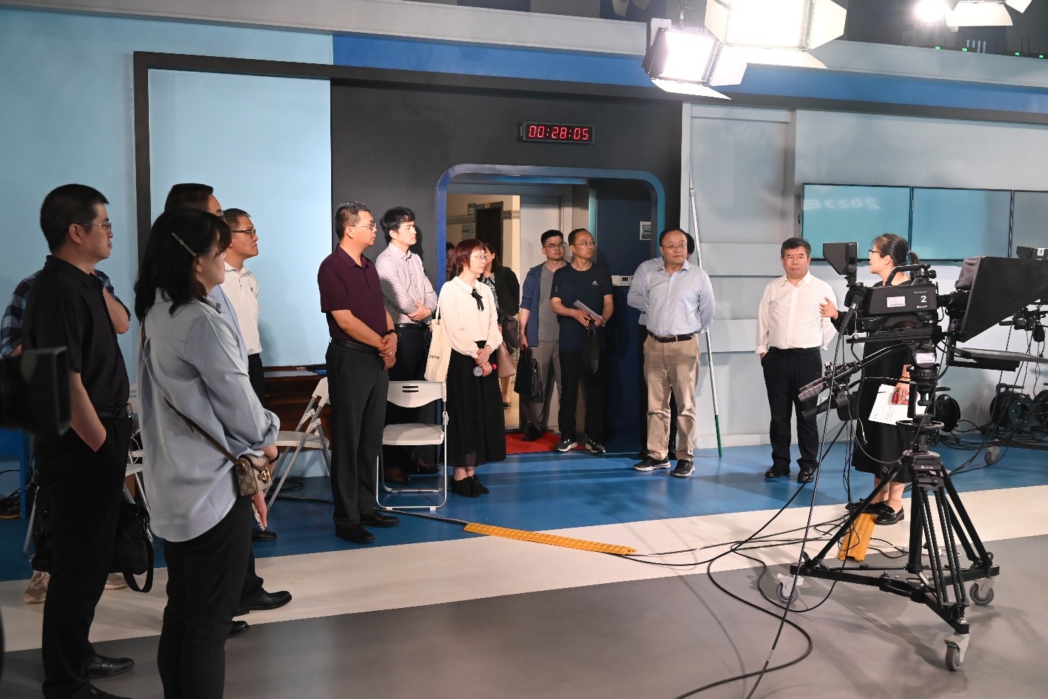 随后,新疆大学的领导和专家参观调研tyc33455cc太阳集团新闻传播学国家实验教学示范中心。实验教学示范中心副主任郝爽向新疆大学的领导和专家介绍公司导播厅、演播厅、融媒体实验室、广播电视实验室与摄影实验室。