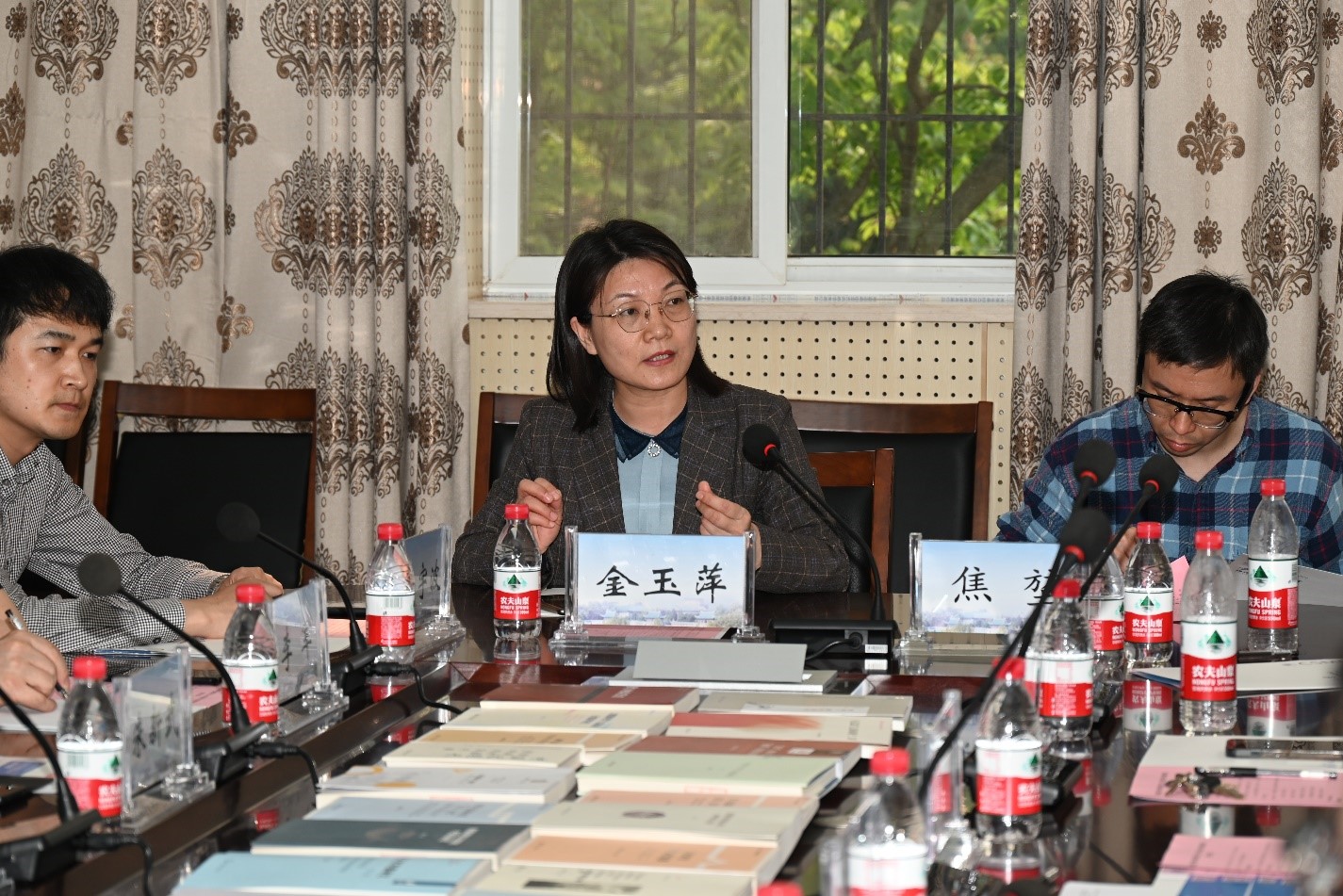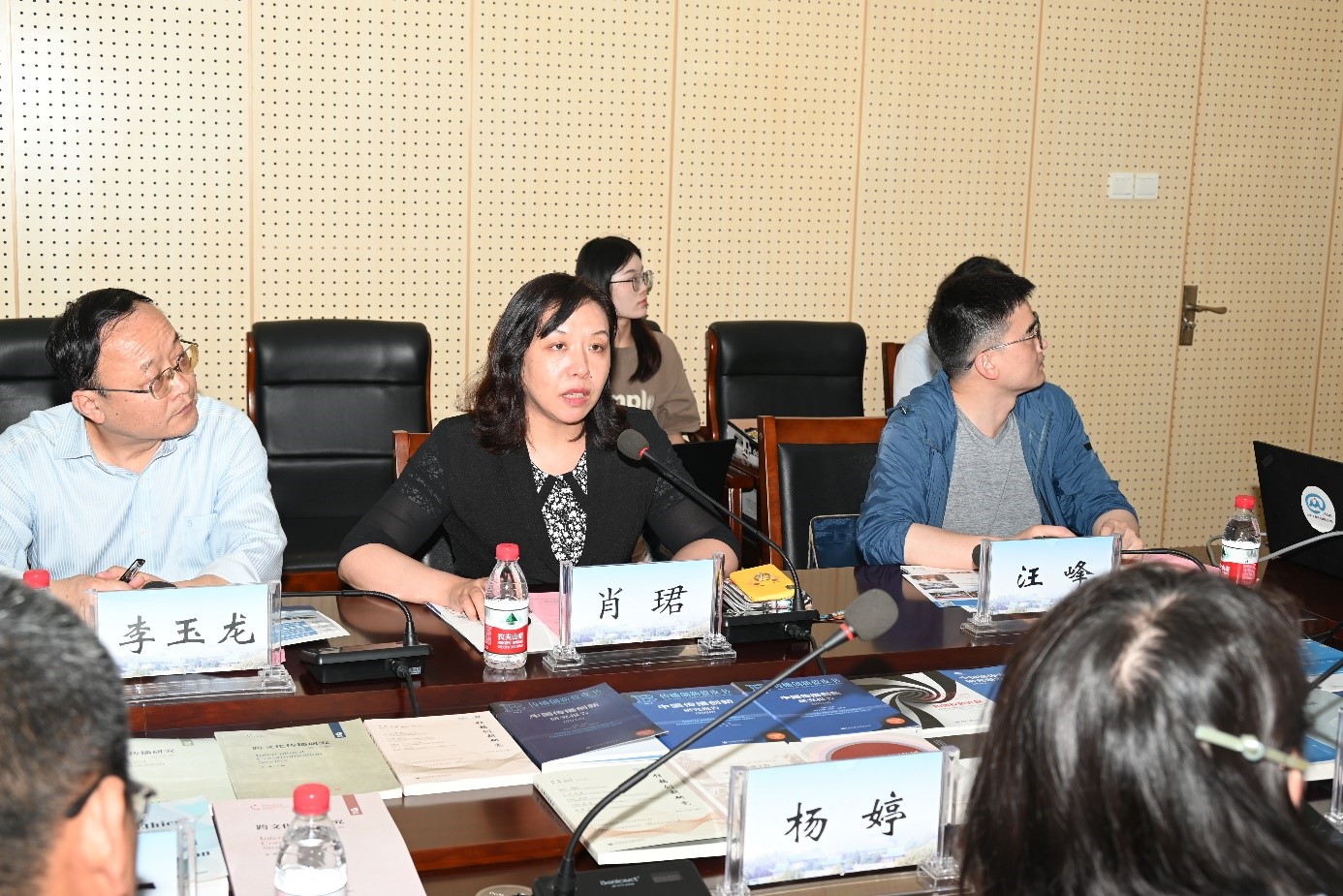 新疆大学的领导和专家首先参观调研tyc33455cc太阳集团媒体发展研究中心(教育部人文社会科学重点研究基地)。tyc33455cc太阳集团媒体发展研究中心副主任肖珺教授,介绍中心的研究特色,以及中心与新疆大学tyc33455cc太阳集团交流合作的情况。新疆大学新闻与传播公司党委副书记、经理金玉萍教授提出对未来交流合作的期望。
