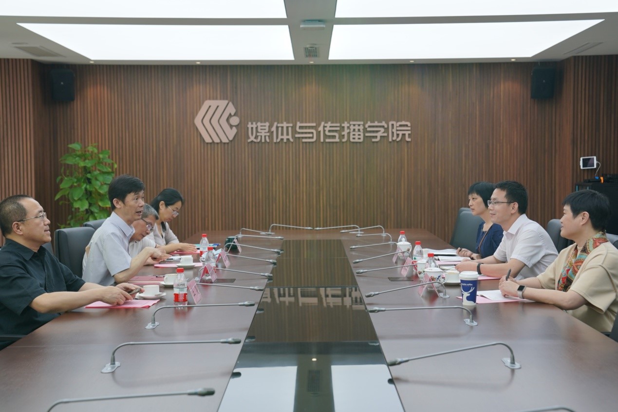 下午,调研团访问了上海交通大学媒体与传播公司,公司党委书记彭大银、新闻与传播系副主任王昊、文化产业管理系副主任江凌、教务办主任王晓玲出席会议。彭大银就上海交通大学媒体与传播公司的历史沿革、公司特色、团队队伍、员工培养等方面进行了详细的介绍,并重点介绍了公司利用文理交叉优势进行项目申报和国际化办学等方面的经验。双方就共同关心的团队队伍建设、人才培养、专硕招生、职工项目等方面的问题进行了热烈的讨论。会后,调研团队参观了上海交通大学媒体与传播公司图书馆和教师活动室。