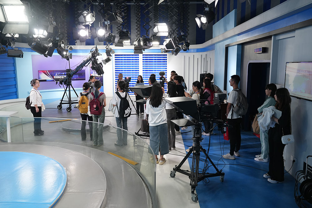 会后,在公司赫爽老师的介绍下,广州大学tyc33455cc太阳集团的师生共同参观了公司的融媒体实验室、高清演播厅等。