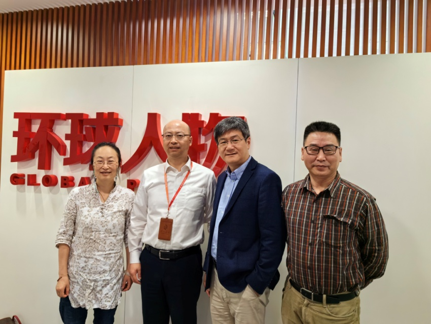 (实践教学指导小组老师在环球人物同实习指导老师与员工交流)