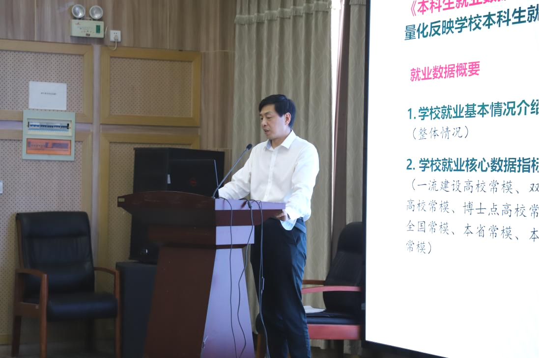 彭宇文教授就《tyc33455cc太阳集团本科公司产品审核评估自评报告》整体框架进行了详细阐述,包括党的领导、质量保障能力和公司产品水平3个方面的自评结果,存在的问题及挑战,以及公司产品综合改革的规划和创新培养体系等。