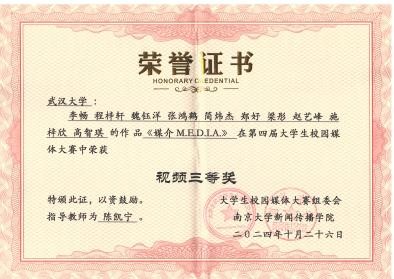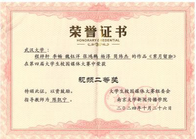 陈凯宁老师指导的本科生团队作品《霁月留珈》荣获视频类二等奖,《媒介 M.E.D.I.A.》荣获视频类三等奖。