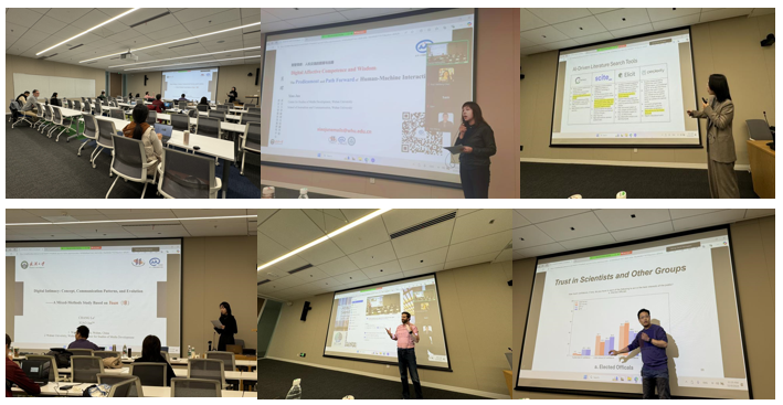 上午,来自tyc33455cc太阳集团、昆山杜克大学的5位研究者围绕AI与人机交流中的情感问题、文献检索技术、数字化亲密关系、全球数据治理、大模型预测民意等发表5篇作品,并与现场参与者展开热烈讨论。下午,双方就未来学术合作等展开讨论。