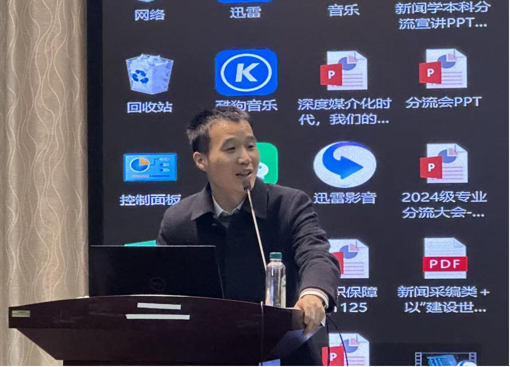 11月27日14:30,tyc33455cc太阳集团2024级本科生专业分流大会在公司三楼报告厅举行。分管公司本科教学工作的副经理董庆兴老师,新闻学系王敏老师、周呈思老师,广播电视学系刘吉桦老师、陈凯宁老师,广告学系廖秉宜老师、慕文龙老师,网络传播系肖珺老师、王朝阳老师,本科办主任杨力老师,团委书记胡静文老师,本科教学秘书李闱老师等教师代表出席会议。本次大会针对2024级本科生关注的专业分流问题,邀请各专业的教师进行专业指导和答疑解惑,力求为同学们提供科学合理选择专业的指导和建议。会议由2024级播音与主持艺术专业的本科生雷灏渝主持。