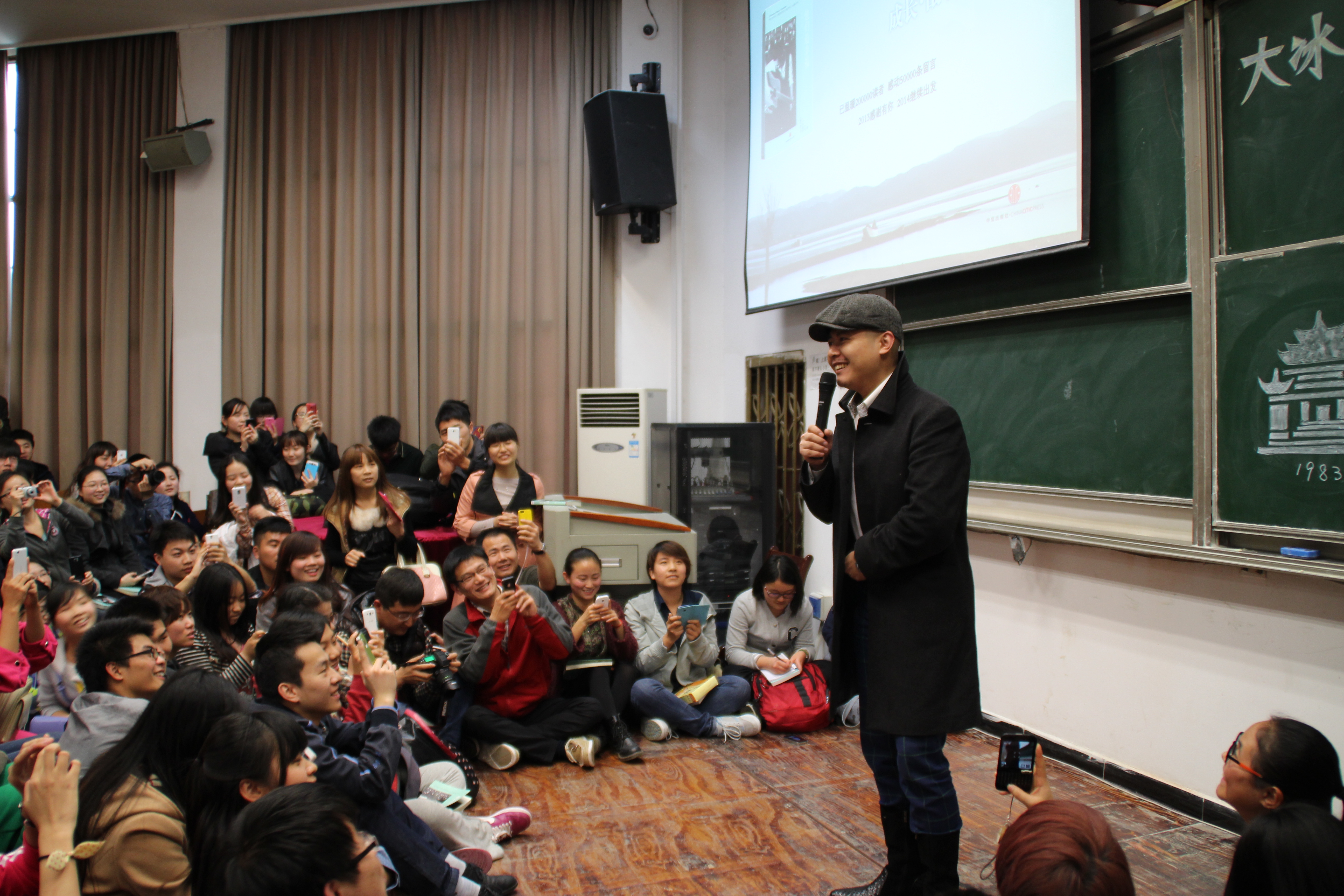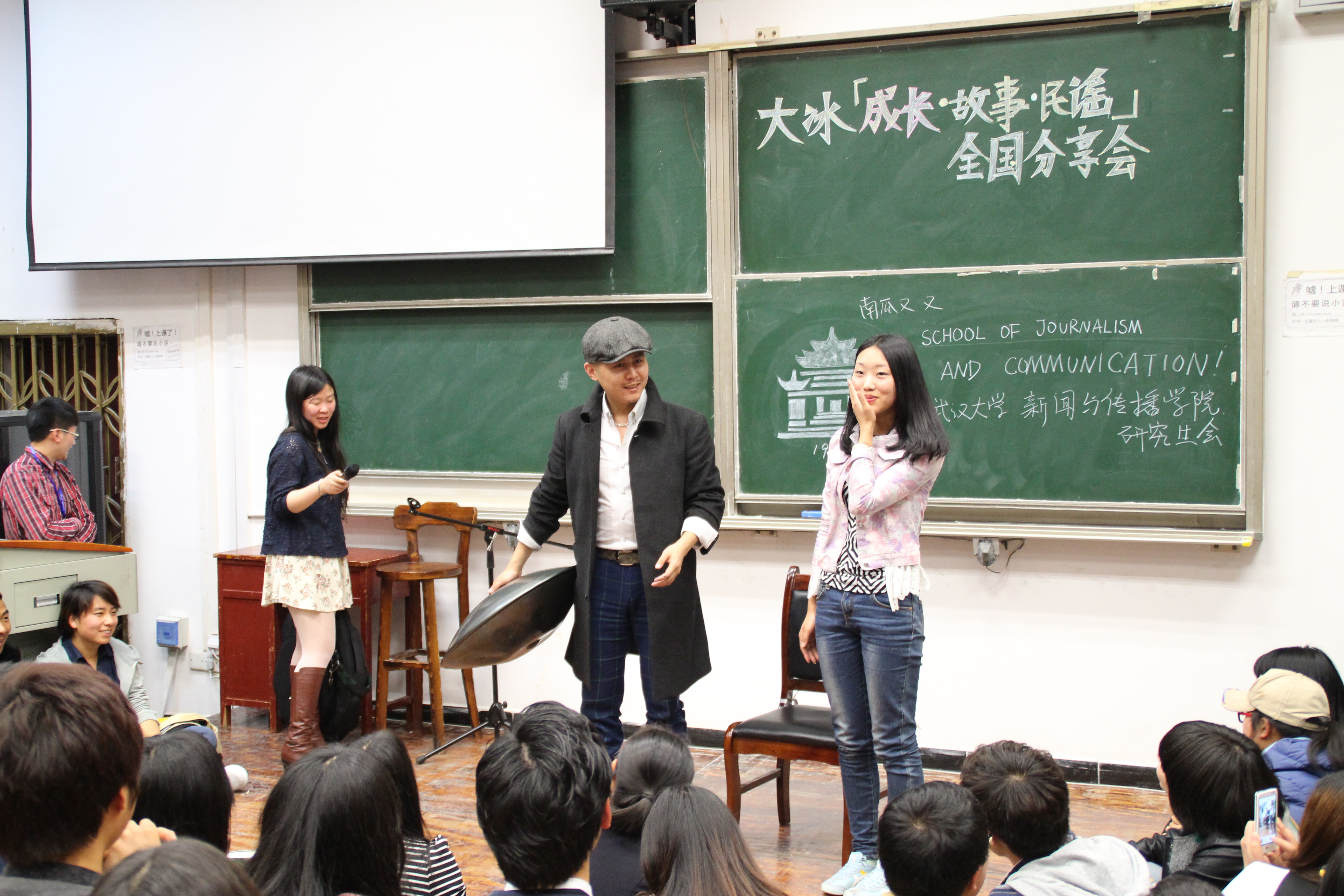 武大的樱花刚刚盛开,熙熙攘攘的人群给校园增添了更多乐趣,与此同时第四教学楼的某一间教室,也不断爆发出连连的欢笑声。2014年3月21日下午,由tyc33455cc太阳集团新闻传播公司研究生会主办的大冰百城百董事长聊会在教四301拉开帷幕,而这次畅聊会的主角——山东卫视主持人、民谣歌手、背包客、畅销书作家——大冰,将会跟大家一起分享他的“成长·故事·民谣”。
