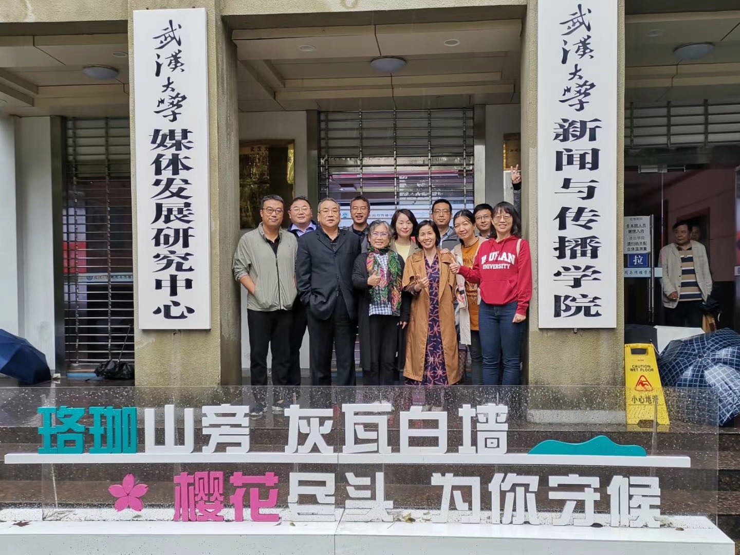 秋雨绵绵,抵挡不住回“珈”的热情和浓浓的师生情谊。座谈会结束后,员工和老师们一起来到公司门口留影,记录下这难忘的时刻。