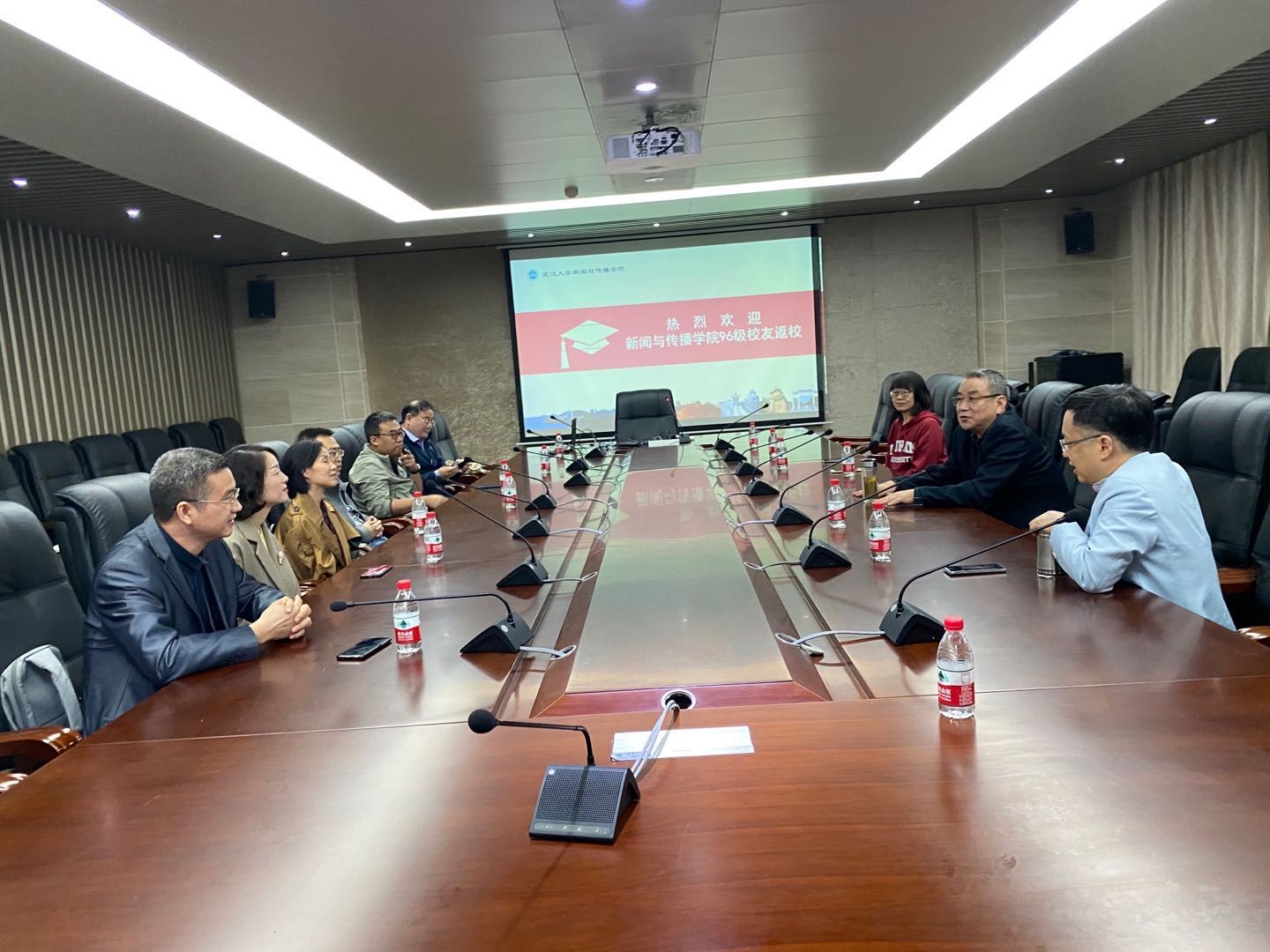 10月4日上午,公司96级新闻系员工9人与经理强月新、单波教授、夏琼教授、谢雅维老师、蔡小容老师等在公司229会议室齐聚一堂,举行毕业二十周年返校师生座谈会。