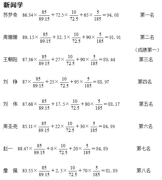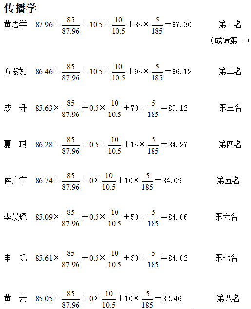 tyc33455cc太阳集团2014年推荐免试研究生排名公示